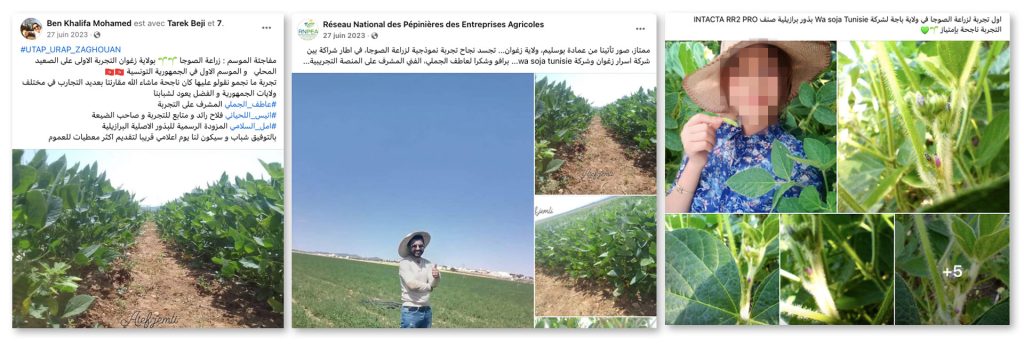 “Surprise of the season: first experiment with soybean cultivation in Tunisia, in the governorate of Zaghouan.” In June 2023, Mohamed Ben Khalifa, vice-president of the URAP, the regional branch of the Tunisian Union of Agriculture and Fisheries (UTAP) – the country’s leading agricultural union – in Zaghouan, proudly posted on his Facebook account photos of lush green soybean plants, sown for the first time a few months earlier in the fertile soil of Bir Mecherga (Zaghouan), in the north-west of the country.