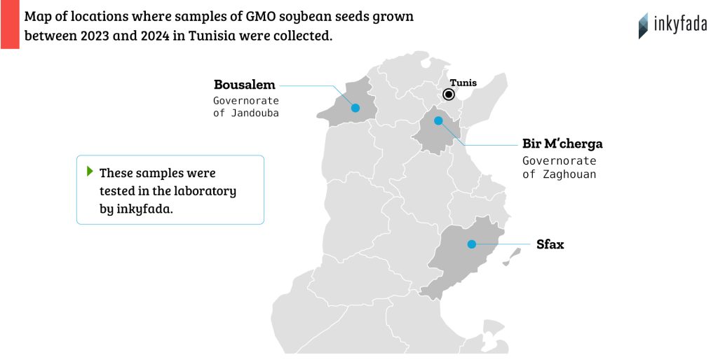 Through laboratory analyses carried out in Tunisia and then in France on three samples of soybeans taken from the regions of Boussalem (Jendouba), Zaghouan (Bir Mcherga) and Sfax, our investigation reveals the GMO nature of these seeds distributed to the Tunisian farmers we met.